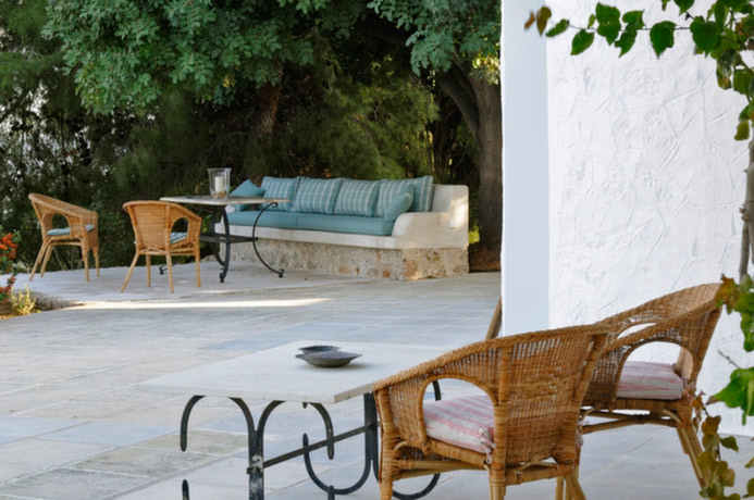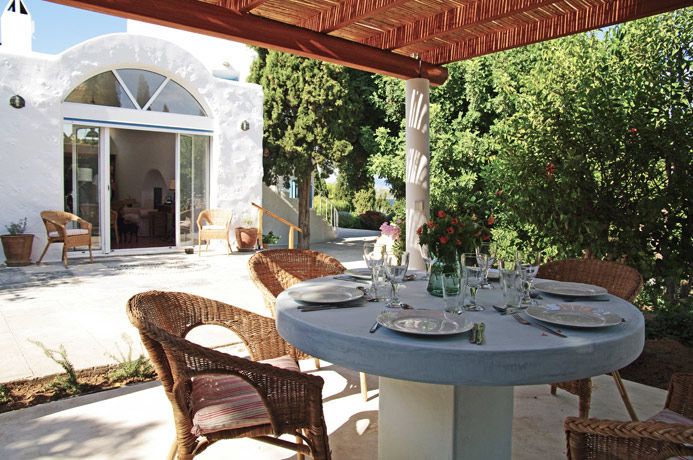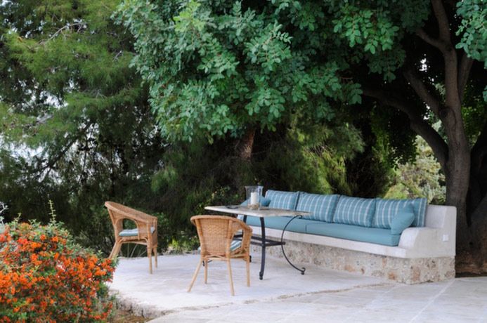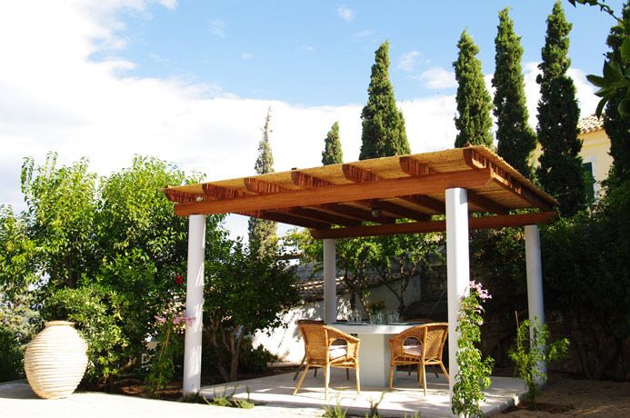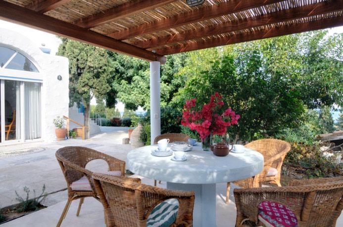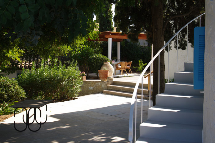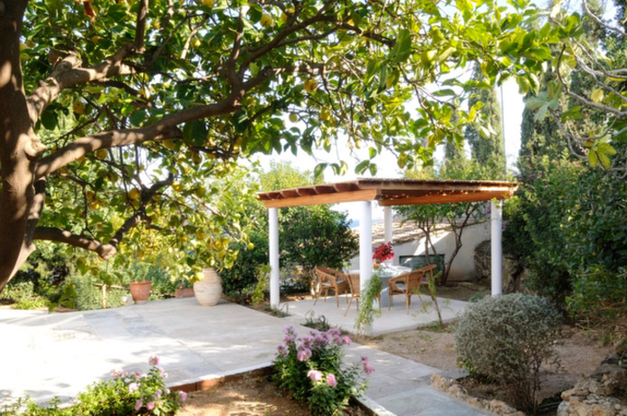 There is a delightful garden surrounding the Mill which has been planted over many years with mature trees, shrubs and plants. Under the leafy coolness of a mature Carob tree is a lovely outdoor seating area with beautiful sea views. A pergola gives shade to the outdoor dining area which is perfect for enjoying an evening meal.