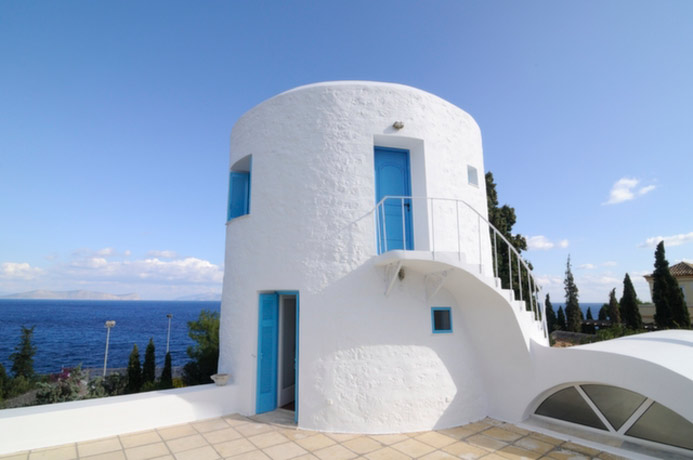 The Old Mill is a unique property set in a stunning location close to the Old Harbour with magnificent views looking out towards the Saronic Gulf islands of Dokos, Trikeri and Hydra. From the garden gate, a short pathway leads directly down to the sea-shore where guests can swim in crystal clear water from rocks or a tiny creek.