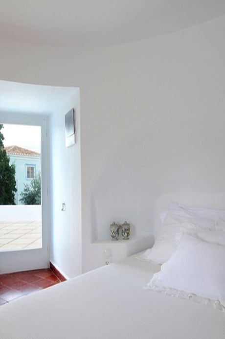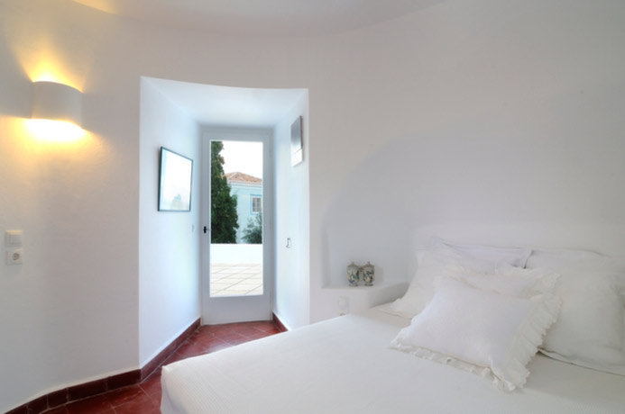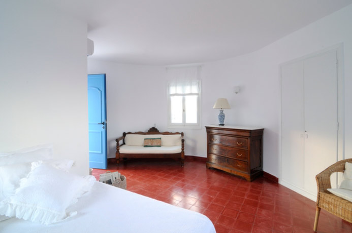 A very pretty external staircase connects the middle and upper round rooms where there are two bedrooms. The middle round room has a double bed recessed into the wall to maximise space with a small but beautifully renovated new bathroom built into the thickness of the wall. This room has a generous terrace leading off it with wonderful sea views and is a perfect spot to sunbathe or enjoy an evening drink.